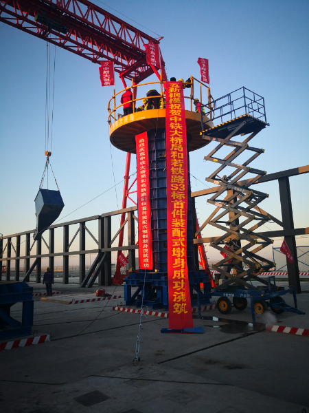 2019年12月26日,中铁大桥局六公司和若铁路S3标项目部成功浇筑首件预制墩身。为满足预制构件的高精度、高标准要求,项目部现场人员与球盟会钢模售后专业技术人员共同配合,使钢筋笼、钢模板和预制台座精准吻合;17时28分,开始混凝土浇筑施工;19时30分,随着施工人员最后一斗混凝土的浇筑,首件墩身的预制作业圆满完成。